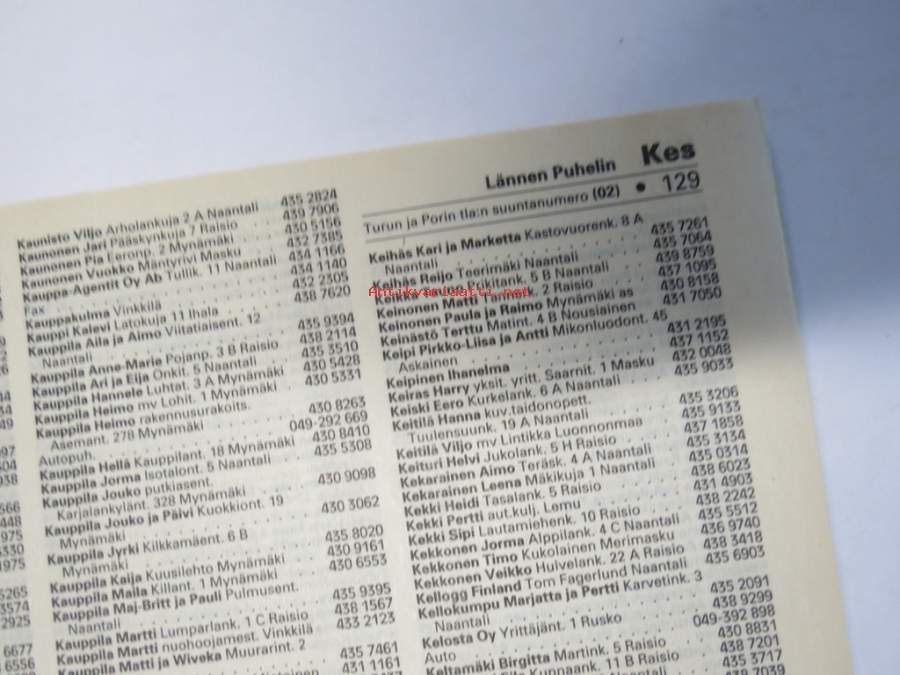 Raisio - Askainen - Lemu - Masku - Merimasku - Mietoinen - Mynämäki - Naantali - Nousiainen - Rusko - Vehmaa - Paikallinen puhelinluettelo 2008