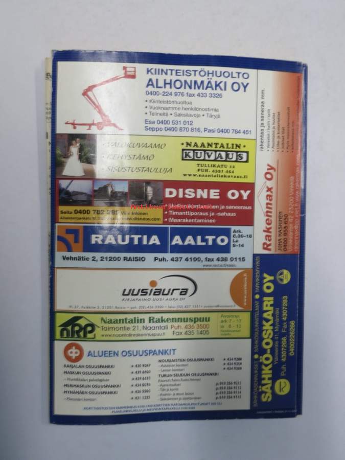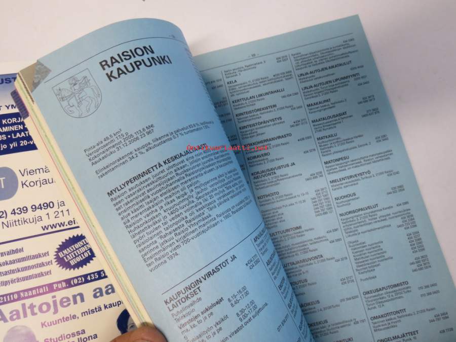 Raisio - Askainen - Lemu - Masku - Merimasku - Mietoinen - Mynämäki - Naantali - Nousiainen - Rusko - Vehmaa - Paikallinen puhelinluettelo 2008