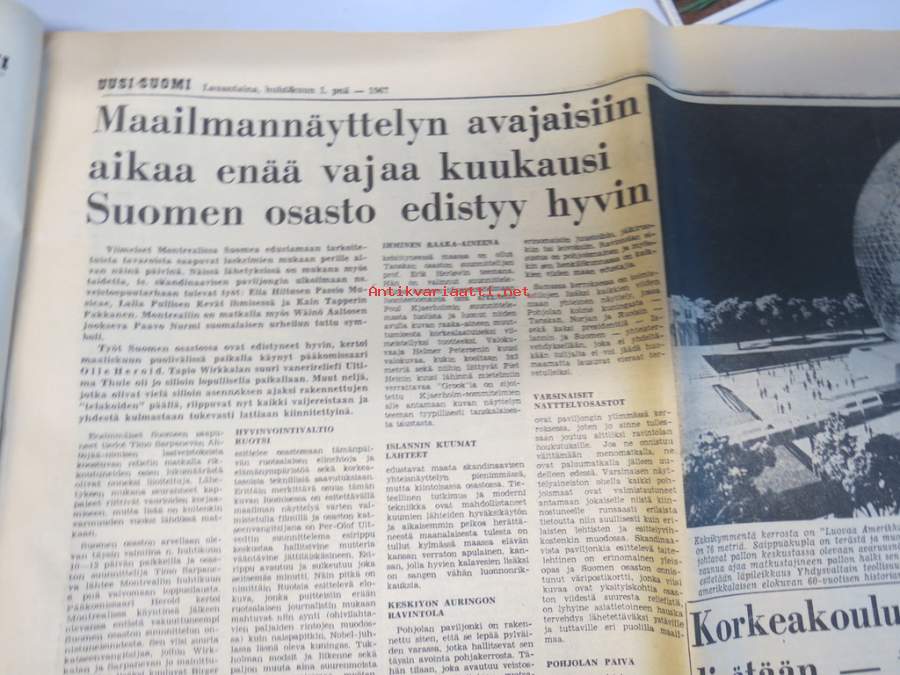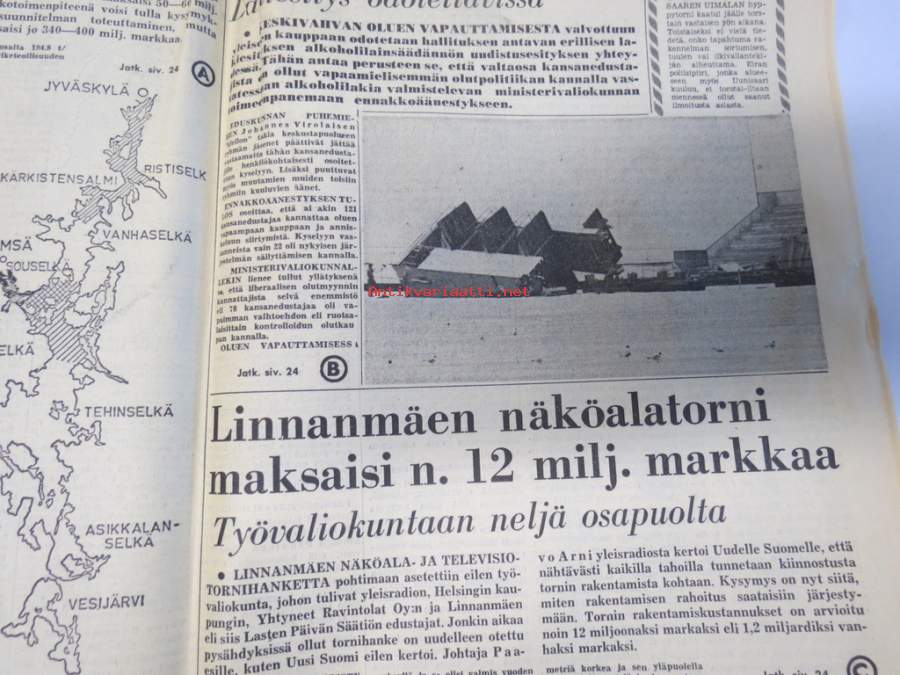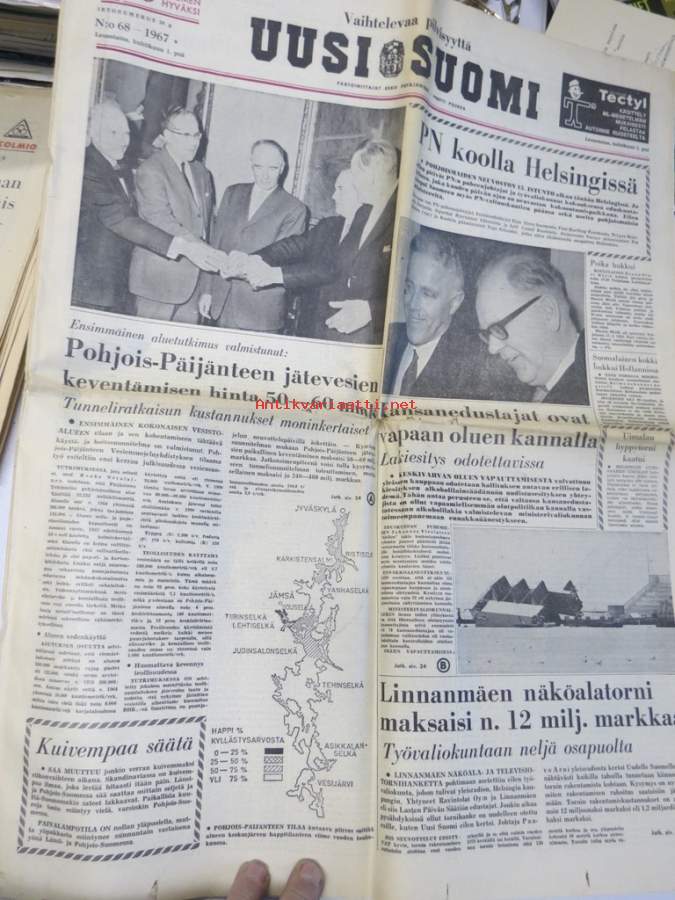 Uusi Suomi la 1.4.1967, Kansanedustaja vapaan oluen kannalla, Linnanmäen näkötorni, Aktivistivaellus 50 vuotta sitten, sekkipetturi Vassilian Glubokov, ym. Näytä