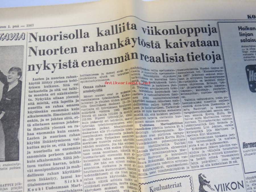 Suomenmaa 17.5.1967 (Maalaisliitto-Kepu), 200 siltaa rakennetaan, Beach Boys - Rantapojat Helsingissä maksoi 100 000 mk, Teräsmies -sarjakuvamainos, ym. Näytä