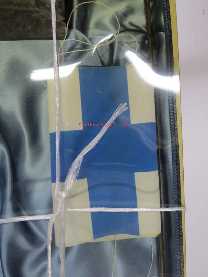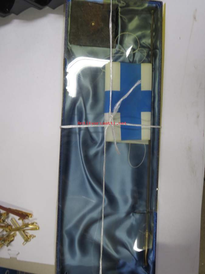 Pakkaus huonokuntoinen, lippu ja jalusta käyttämättömät