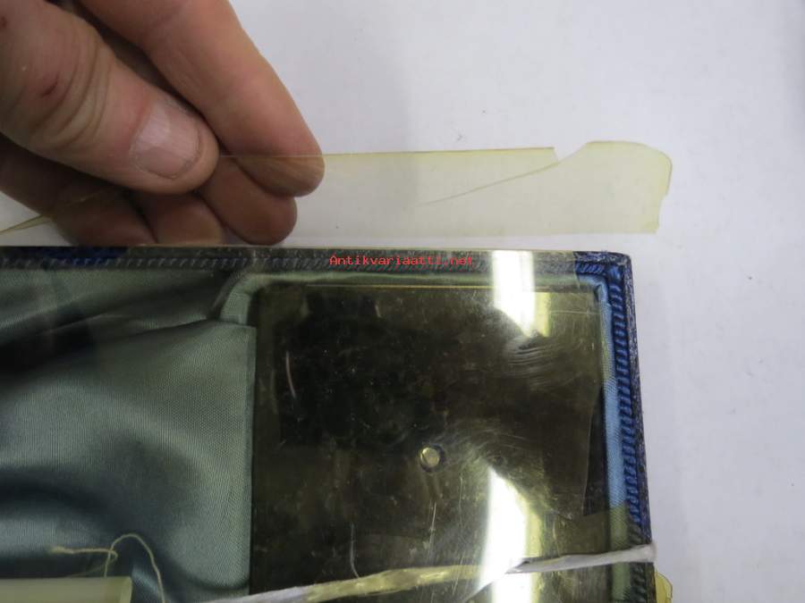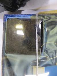 Korkeus noin 45 cm, pakkauksen muovi hapertunut ja tummunut, puuttuu paloja.
