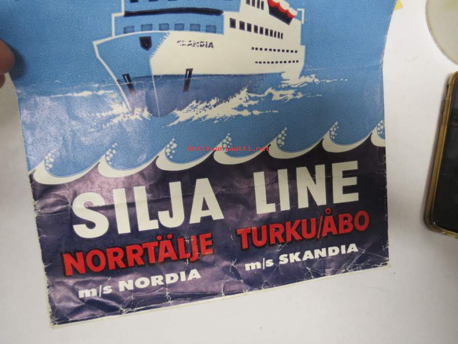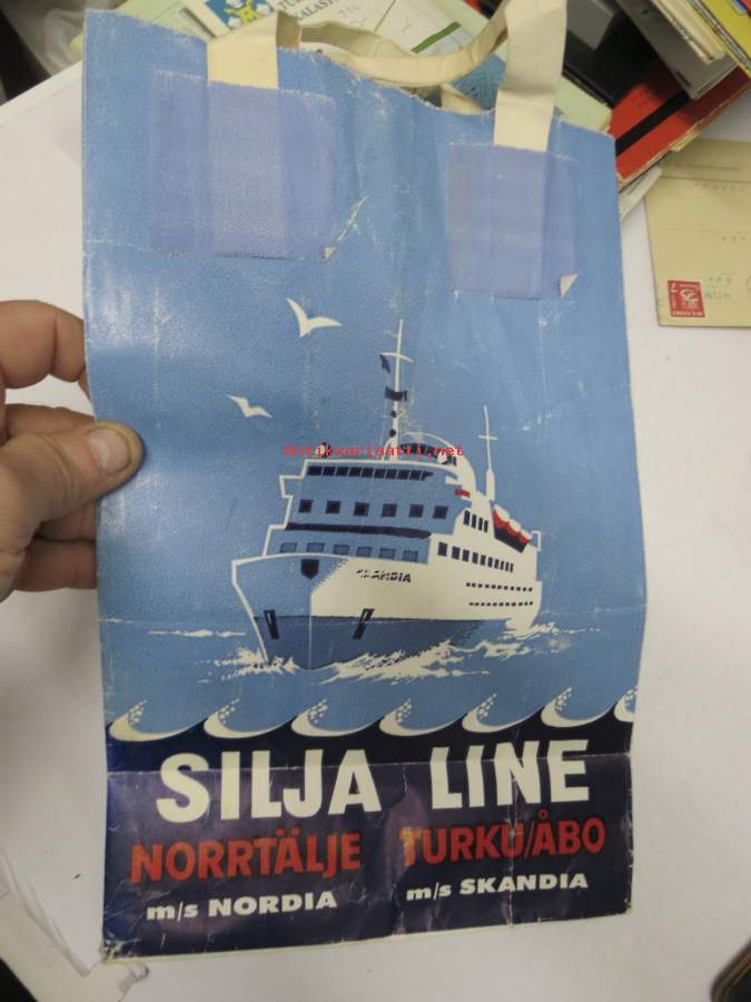 Silja Line - Norrtällje M/S Nordia / Turku-Åbo M/S Skandia -paperikassi 1960-luvulta (Tax-Free ostoksia varten jaettu)