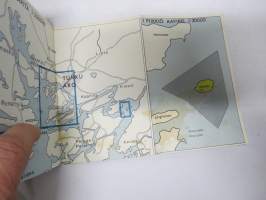 Näin ajatte oikein Turussa - Liikenneopas -Turun kaupunkiliikenteen ajo-ohjeita ja pulmatilanteiden ohjeita, karttoja (huoltoaemat merkitty) takakansi Simca 1000 e