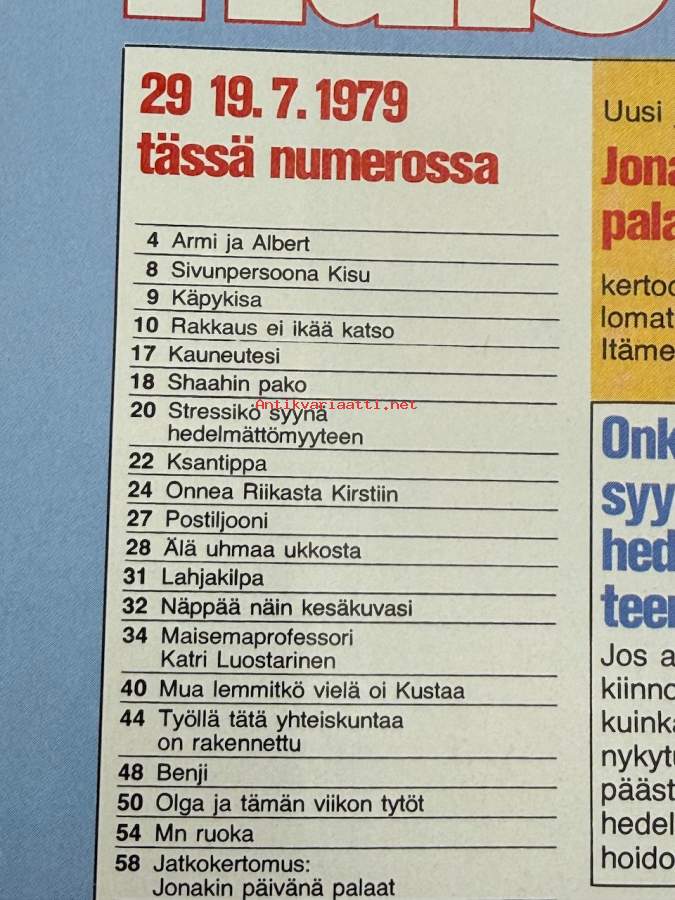 Me Naiset 1979 nr 29, Armi Kuusela, Kisu - Sivun persoona, ennätyspari - Ida ja Kustaa Virenius