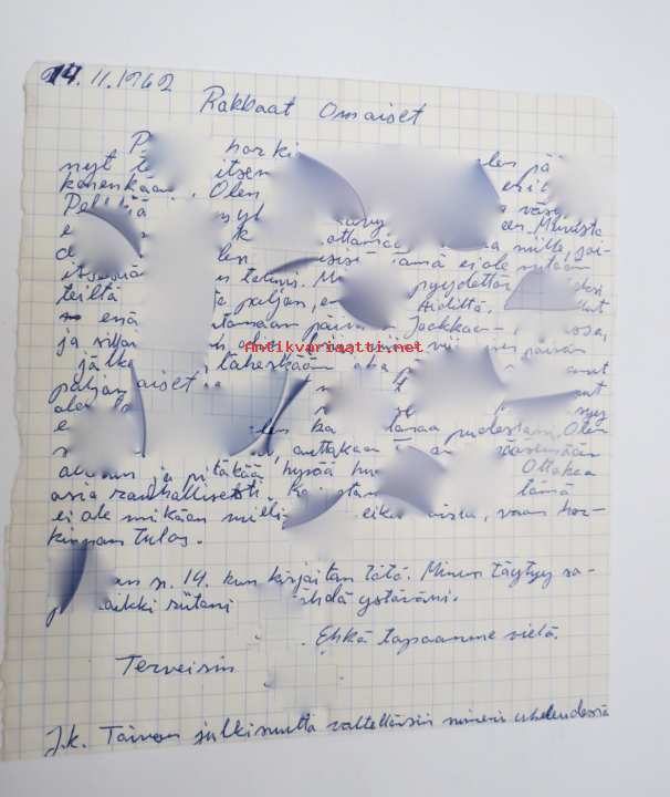 14.11.1962 - Rakkaat omaiset -aito itsemurhan tekijän tai aikojan kirje