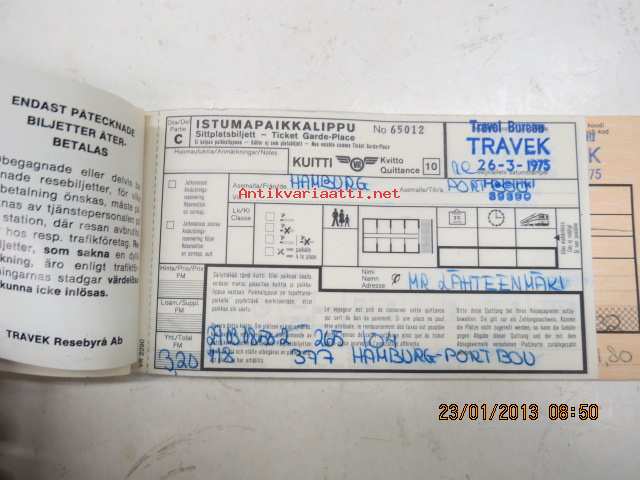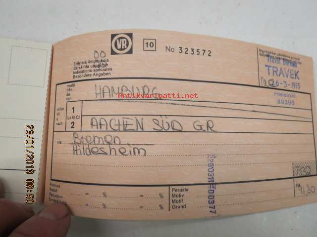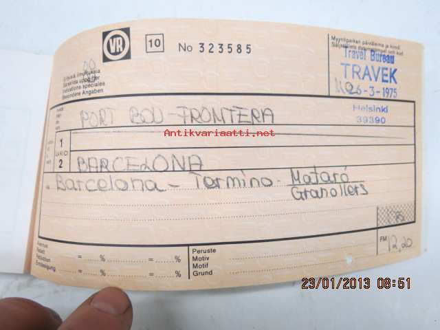 VR Matkalippu Hampuri-Barcelona 1975
