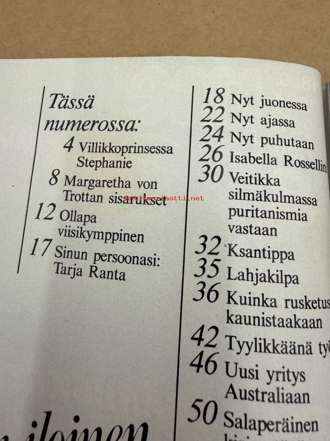 Me Naiset 1984 nr 38, Monacon Stephanie, Ollapa viiskymppinen, Isabella Rossellini, Heidi Tauri