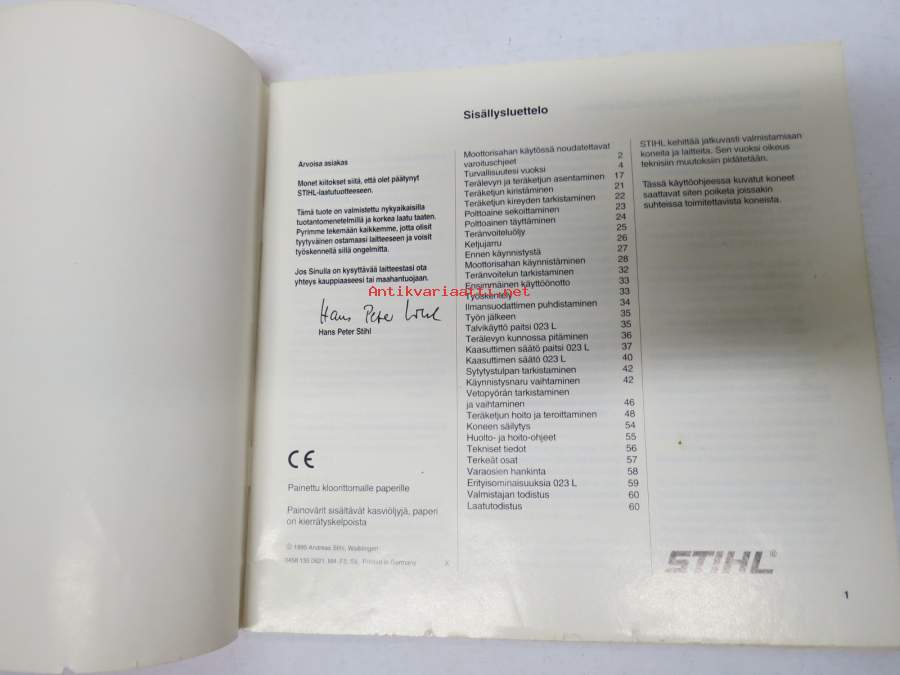 Stihl 021, 023, 025 moottorisaha -käyttöohje