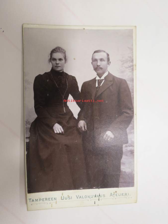 Pariskunta - Tampereen Uusi Valokuvausatelieri -visiittikortivalokuva / carte de visite / cdv -valokuva
