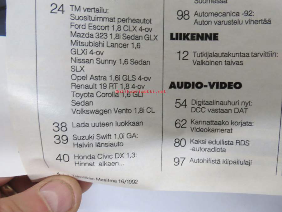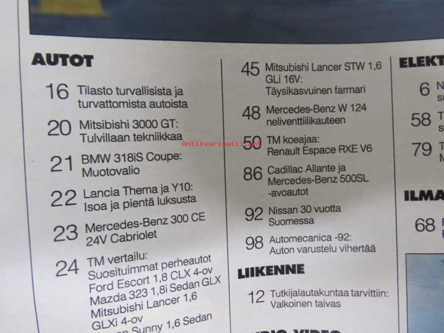 Tekniikan Maailma 1992 nr 16, Perheautojen suurvertailu, Kotimikrot, Renault Espace, Farnborough ilmailunäyttely, ym.