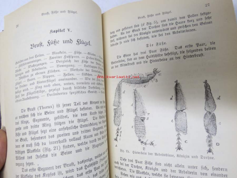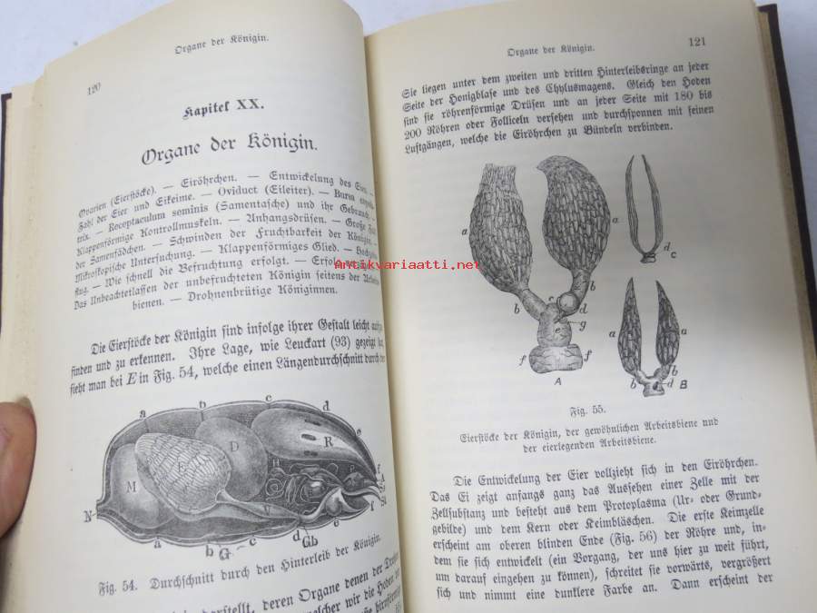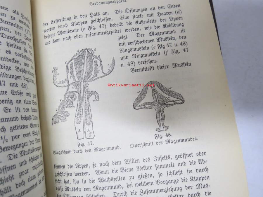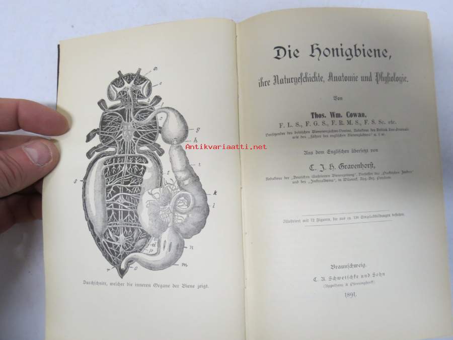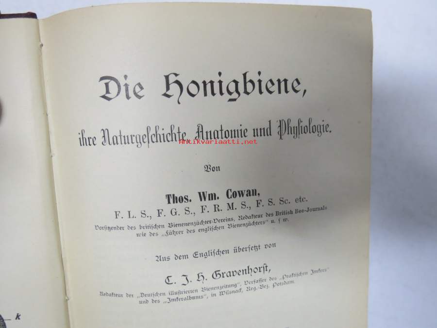 ...Sowie Deren Fabrikation auf Walzwerken und Handpressen. 2 eri kirjaa yhteissidoksena, painovuodet 1891 & 1892, harvinaiset kirjat. etulehdellä nimikirjoitus K.A. Wasastjerna. Mehiläisten fysiologiaa ym. & hunajantuotanto ja siinä käytettäviä menetelmiä ja välineitä.