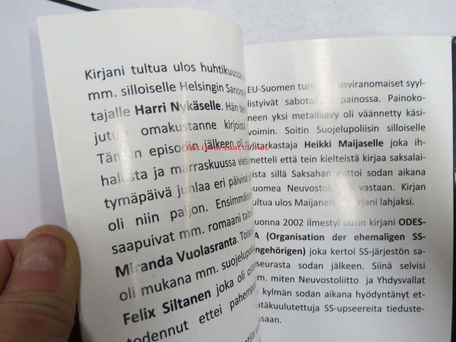 Mark Parland - SS-divisioonien sotarikokset v. 1939-1945 (etulehdellä on Parlandin omiste ja nimikirjoitus kirjan saaneelle henkilölle)