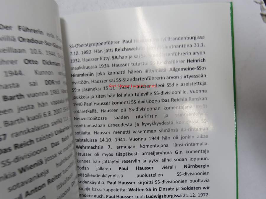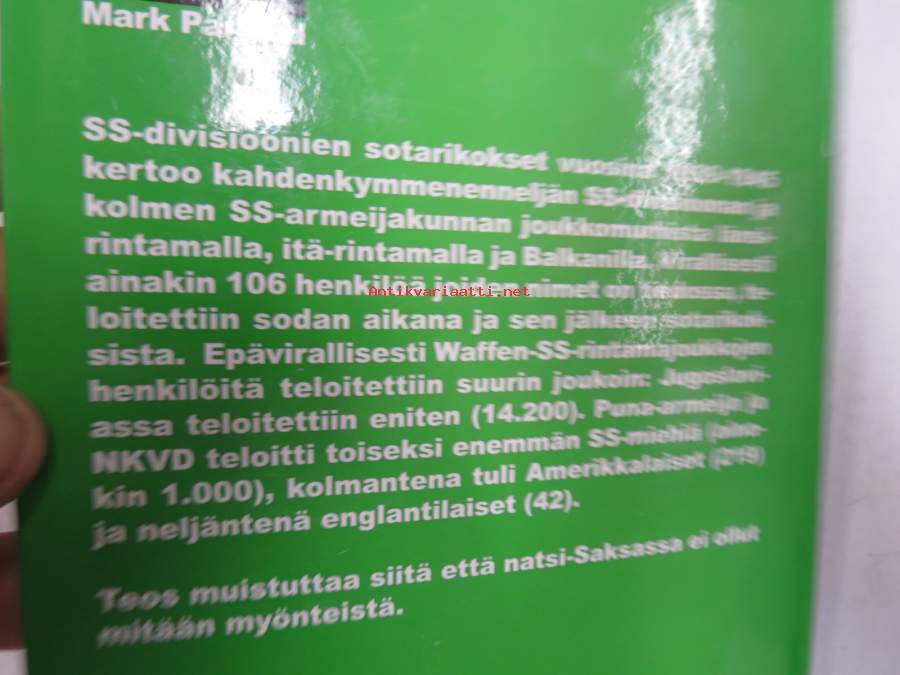 Mark Parland - SS-divisioonien sotarikokset v. 1939-1945 (etulehdellä on Parlandin omiste ja nimikirjoitus kirjan saaneelle henkilölle)