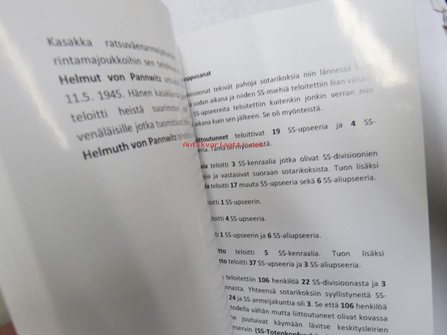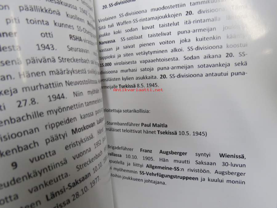 SS-divisioonien sotarikokset v. 1939-1945 (etulehdellä on Parlandin omiste ja nimikirjoitus kirjan saaneelle henkilölle)