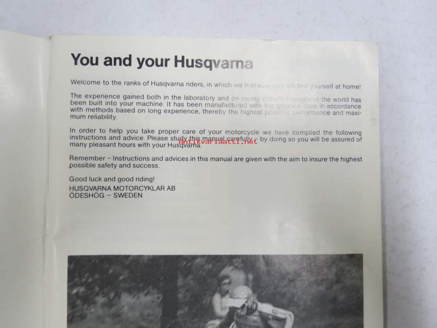 Husqvarna Motorcycles Owner´s Manual from frame no CN 1001 -englanninkielinen perusteellinen käyttöohjekirja, kuvitettu