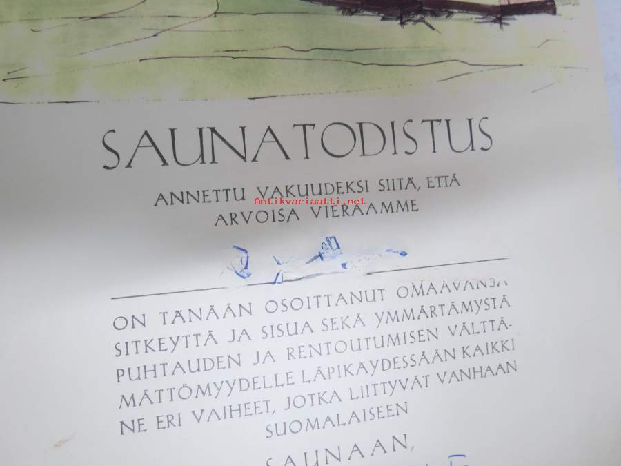Outokumpu Oy - Outokummun kaivos - Saunatodistus nr 756 v. 1973 -myöntökirja (saajan nimi retusoitu kuvasta, on OK itse myöntökirjassa