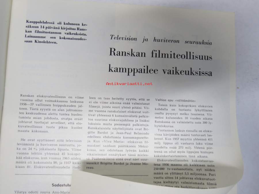 Kino-Lehti 1966 nr 1, Brigitte Bardot, Elokuvavuosi 1965, Kotimaisen elokuvan mahdollisuudet, Otto Breminger, ym.