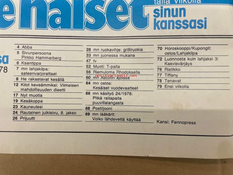 Me Naiset 1978 nr 44 (2.11.), Silvia, Anu Panula, Rinkelileipurin kotona (Vera Resenkov), Seppo Ruohonen, Mustiala, neljäkymmentä päivää Marilynin kanssa 9.osa