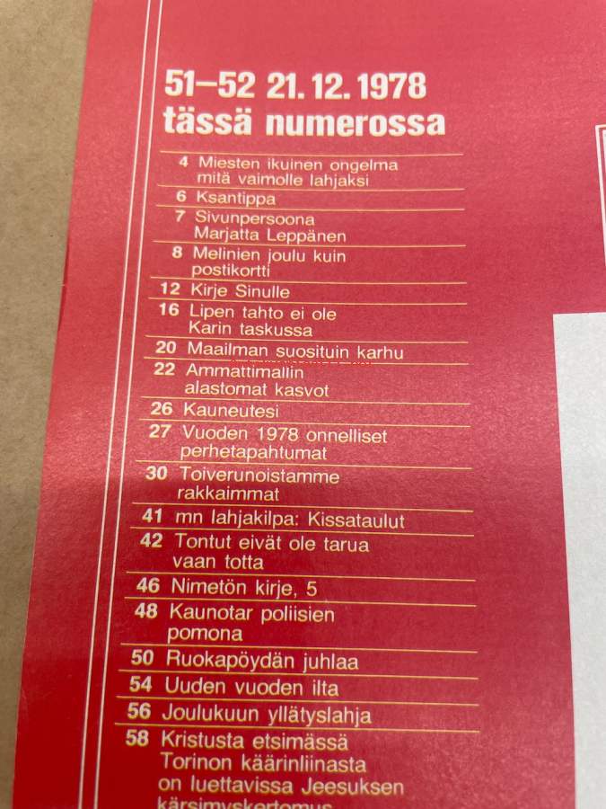 Me Naiset 1978 nr 51-52 (21.12.), Lippe Suomalainen, Melinien joulu, Turun tuomiokirkko, Mitä vaimolle lahjaksi, Sivun persoona Marjatta Leppänen