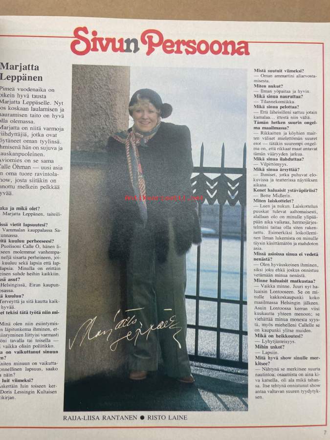 Me Naiset 1978 nr 44 (2.11.), Silvia, Anu Panula, Rinkelileipurin kotona (Vera Resenkov), Seppo Ruohonen, Mustiala, neljäkymmentä päivää Marilynin kanssa 9.osa