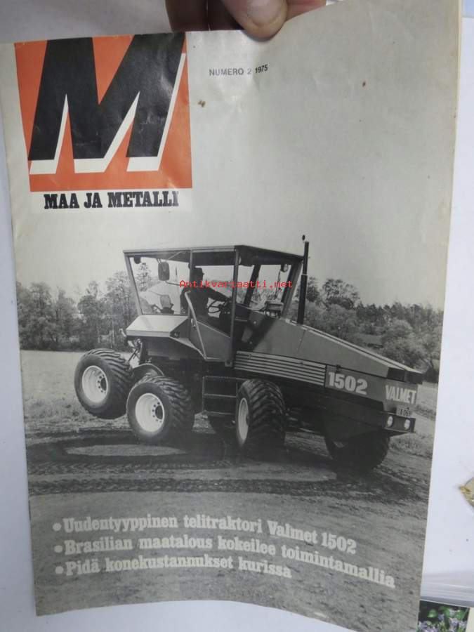Maa ja Metalli 1975 nr 2 -Valmet Oy asiakaslehti, 1502 käyttökokeissa, Traktori- ja metsäkonemyynti 1975, Koneurakoitsija Iikka Muhonen, Auno Hakala Valmetin värit