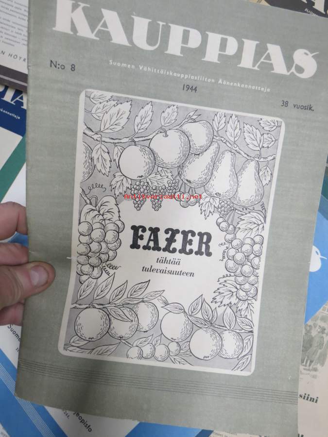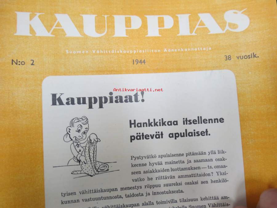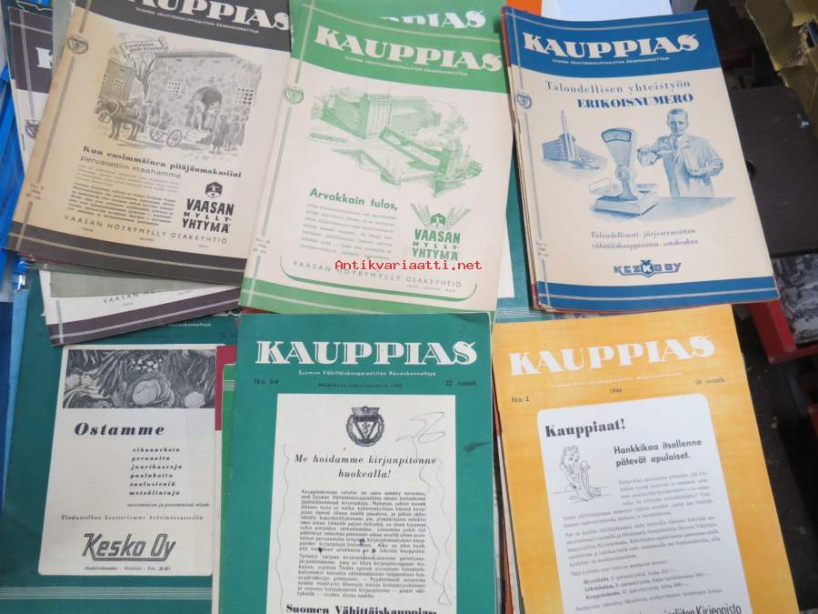 Kauppias -lehtiä noin 40 kpl erä vv. 1942-53, lehdissä runsas sisältö ja ajankuvaa, paljon mainoksia, tuotemerkkejä, asia-artikkeleita, pula-ajan asiaa yms.