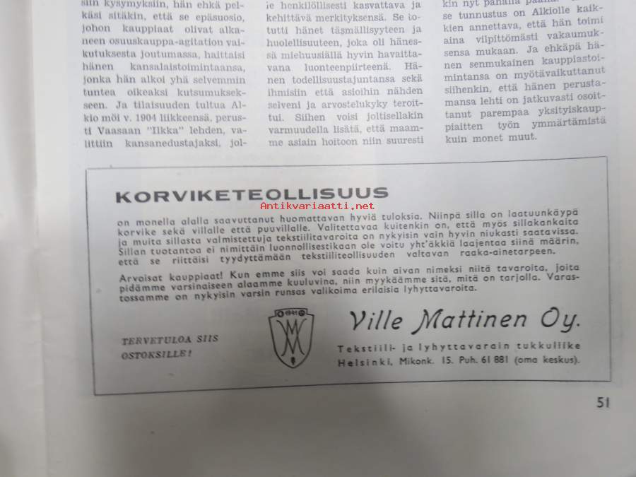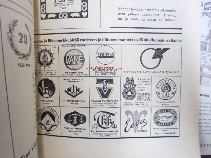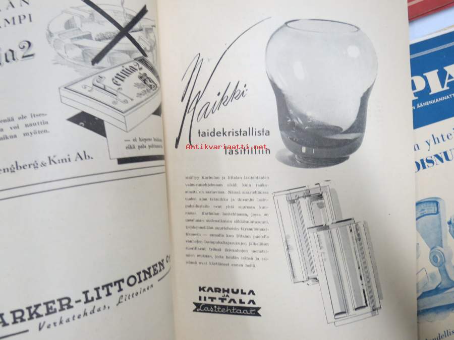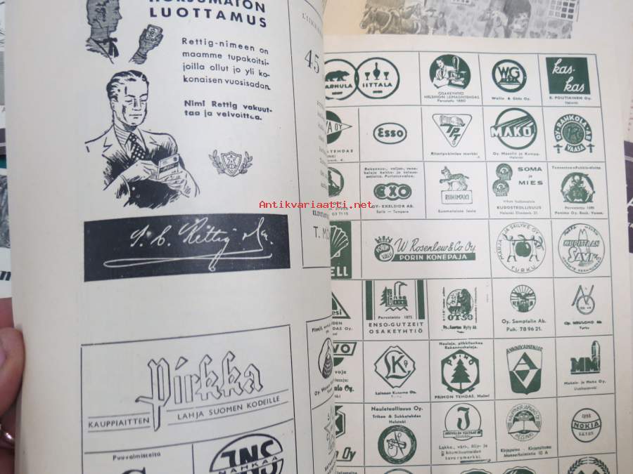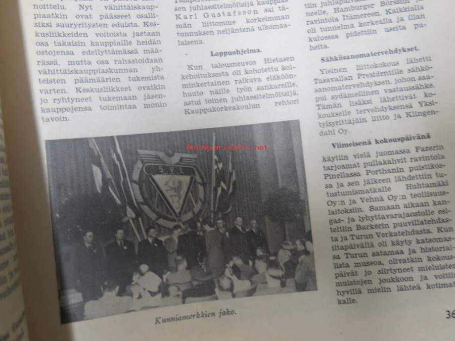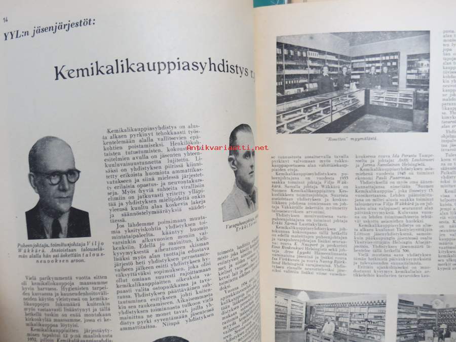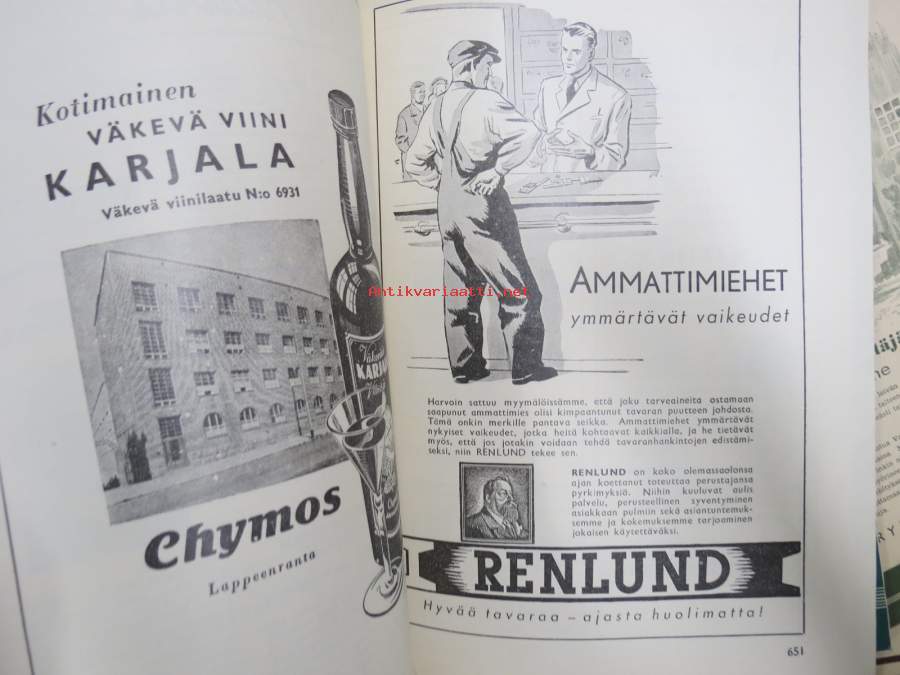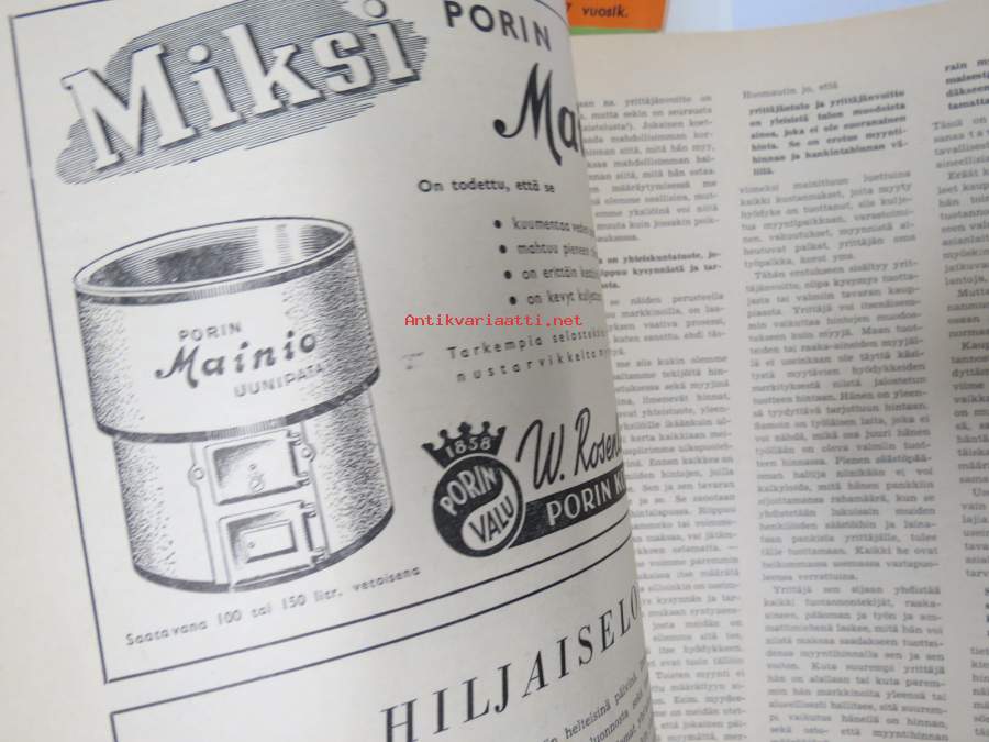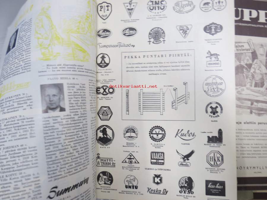 Kauppias -lehtiä noin 40 kpl erä vv. 1942-53, lehdissä runsas sisältö ja ajankuvaa, paljon mainoksia, tuotemerkkejä, asia-artikkeleita, pula-ajan asiaa yms. Näytä