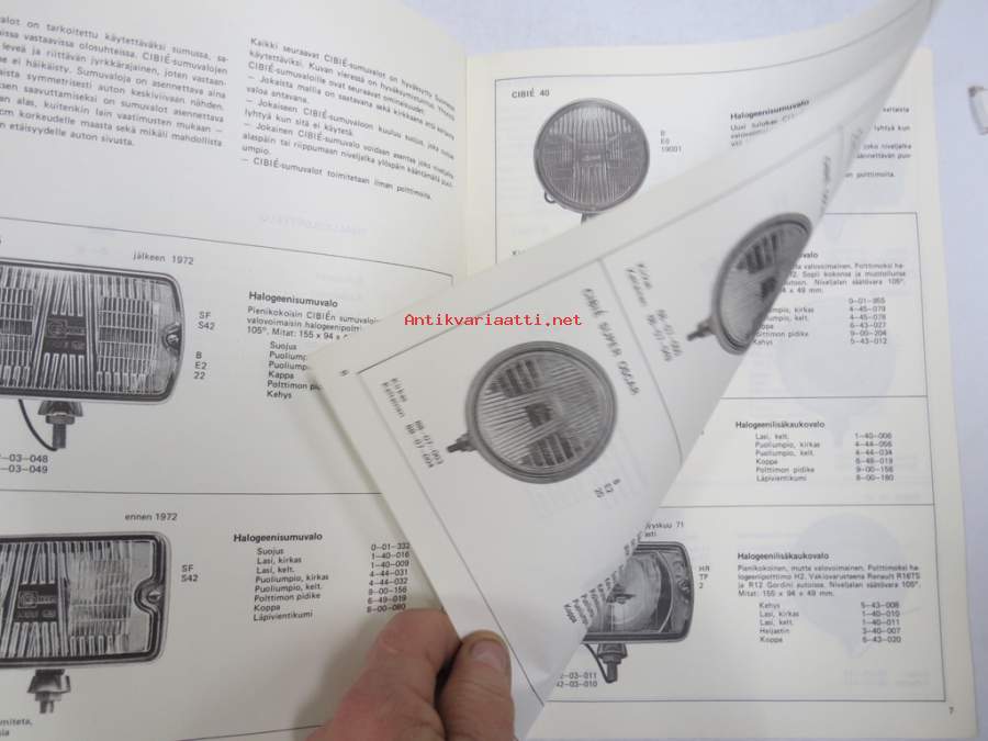 Cibie lisävalot 1974 -tuoteluettelo / myyntiesite