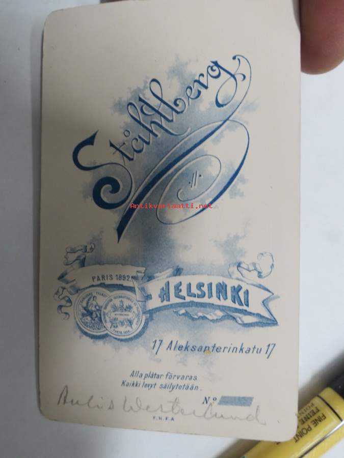 Aulis Westerlund, Atelier Ståhlberg, Helsinki -visiittikorttivalokuva / carte de visite / cdv