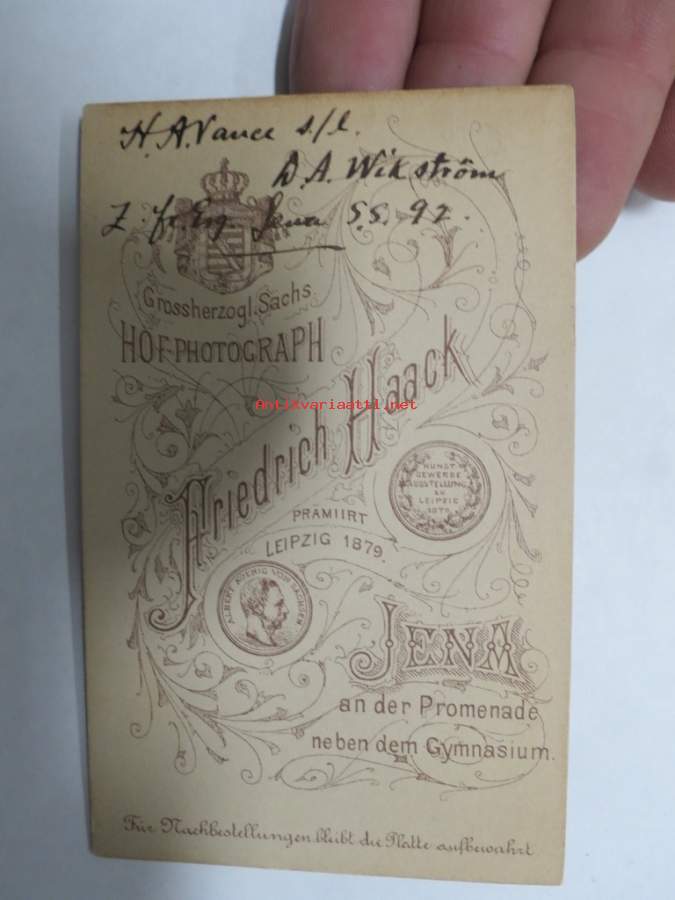 H.A. Vance, Jenan yliopisto (Universität Jena) 1892, kuva omistettu suomalaiselle D.A. Wikströmille -visiittikorttivalokuva / carte de visite / cdv