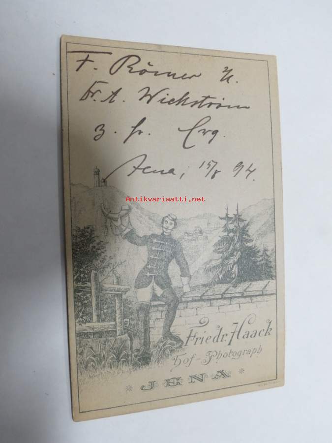 F. Römer, Jenan yliopisto (Universität Jena) 1894, kuva omistettu suomalaiselle D.A. Wikströmille -visiittikorttivalokuva / carte de visite / cdv
