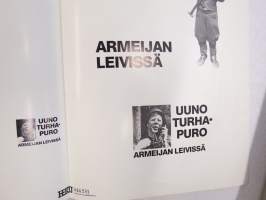 Uuno Turhapuro Armeijan leivissä - Helsingin Kuvalaattatehdas -elokuvan mainosten painolaattojen malleja painettuna arkille (klisee)