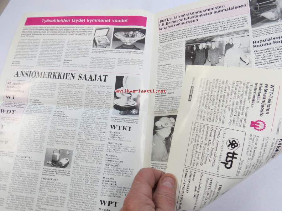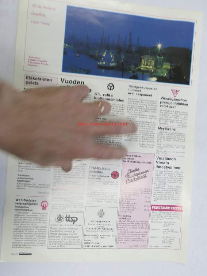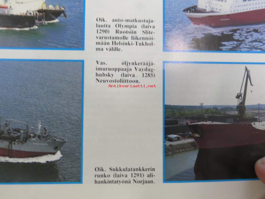 Veistämön viesti - Turun telakan tiedotuslehti nr 22, 18.12.1986 -kansikuvassa Turun telakan toimittamat laivat vuonna 1986, ym.