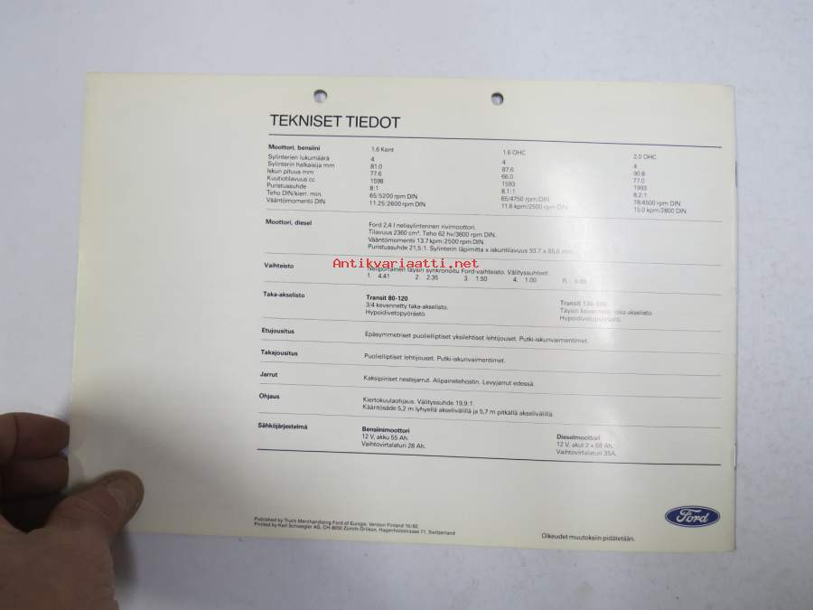 Ford, yritysesittelyä, autot, traktorit, tarvikkeet ym. tietoa 1980-luvun alusta -myyntiesite