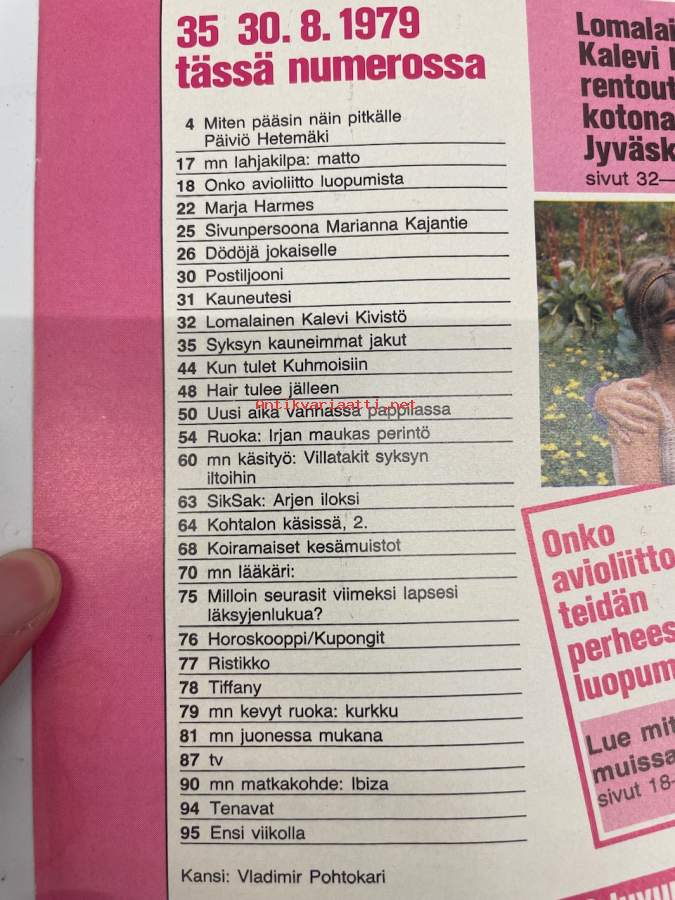 Me Naiset 1979 nro 31 (2.8.), Armi Aavikko, Sivun persoona Jorma Pulkkinen, Imatran immet, Kaarina Suonperä, Heikki Värtsi, Aila Meriluoto