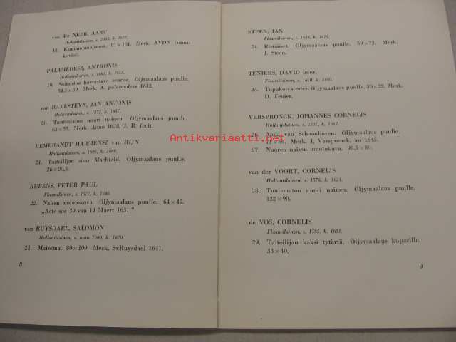 Paul ja Fanny Sinebrychoffin taidekokoelmat luettelo 1936 -art collection catalogue