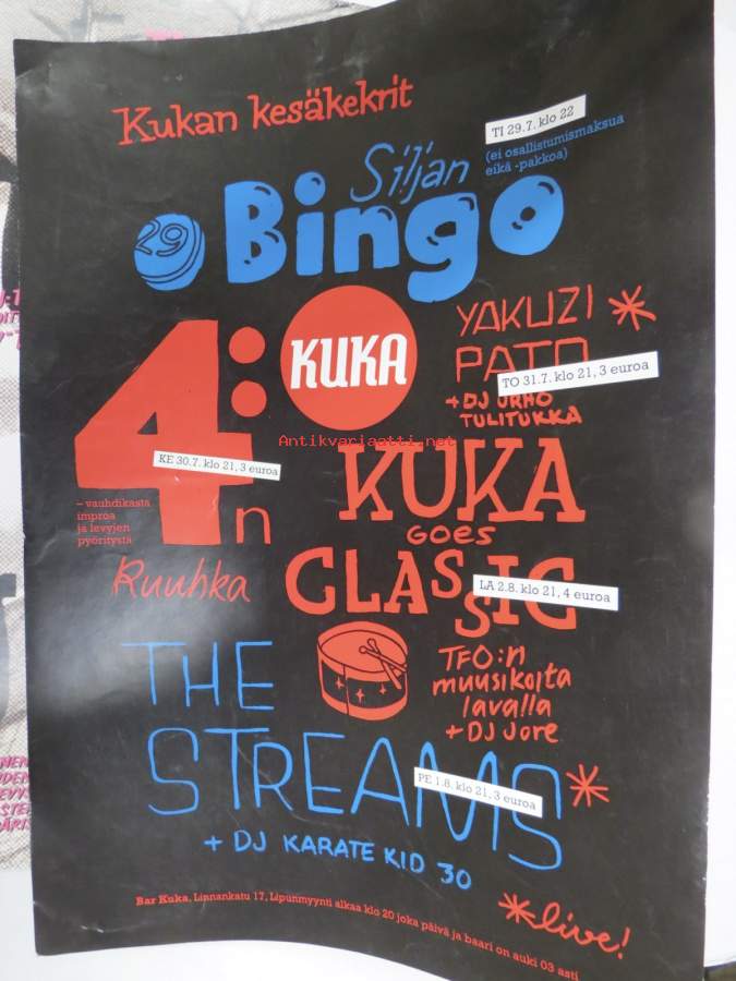 Kukan kesäkekrit, Siljan Bingo, The Streams - Bar Kuka (Turku) -keikka- / näyttelyjuliste