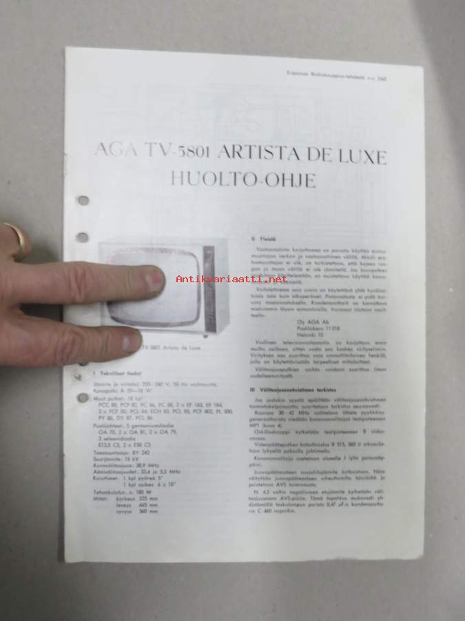AGA TV-5801 Artista De Luxe -huolto-ohje