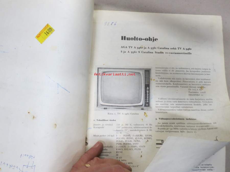 AGA TV A 9460, A 9561 Catalina, A 9460 S A 9561 S Catalina Studio -huolto-ohje