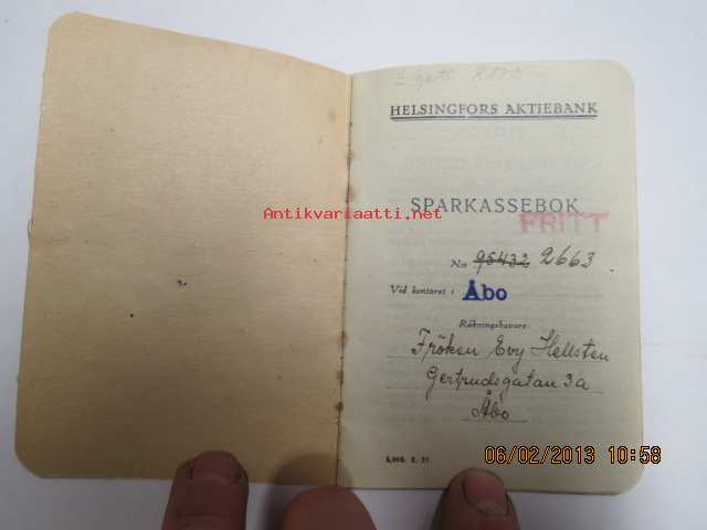 Helsingfors Aktiebank Sparkassebok / säästökirja, Evy Hellsten