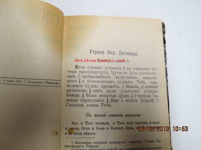 Slava sisni v bogosclusebnih... -venäläinen uskonnollinen kirja v. 1911, painettu Pietarissa -"sanaa jumalankuulijoille..."