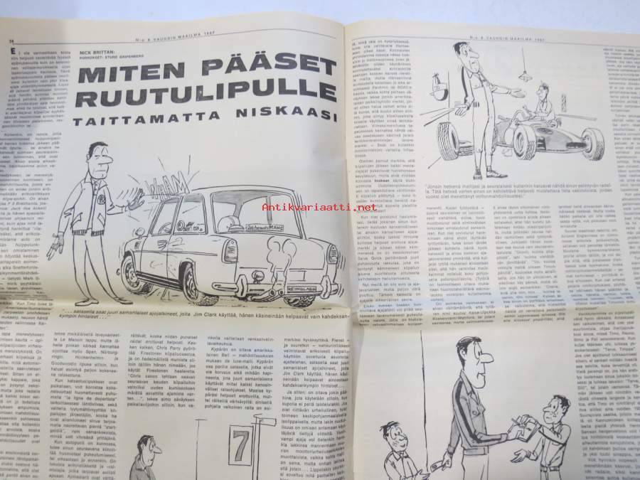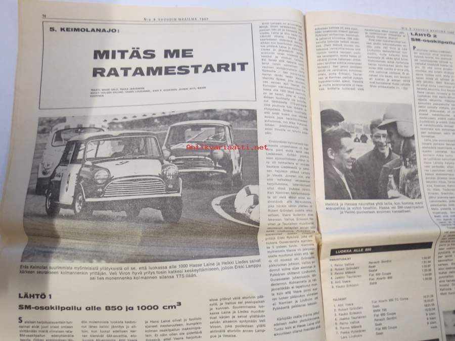 Vauhdin maailma 1967 nr 8, sis. mm. seur. artikkelit / kuvat / mainokset; Jätkä mä meen ensin, Saammeko esitellä Jussi Lagerblom autourheilun Aladin, III