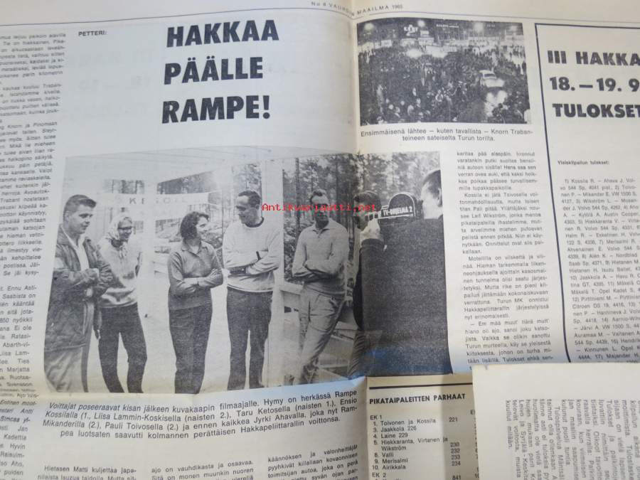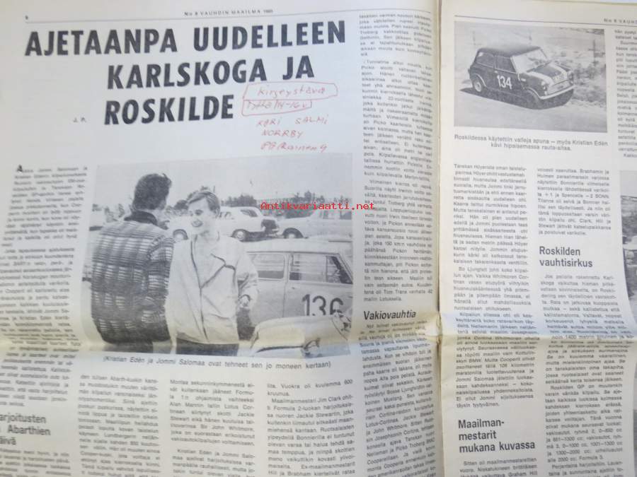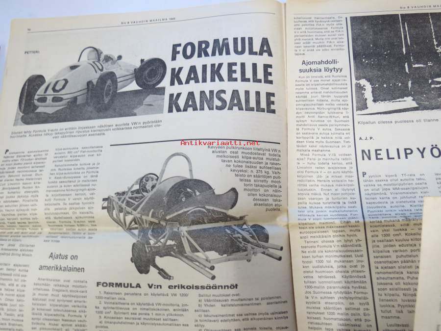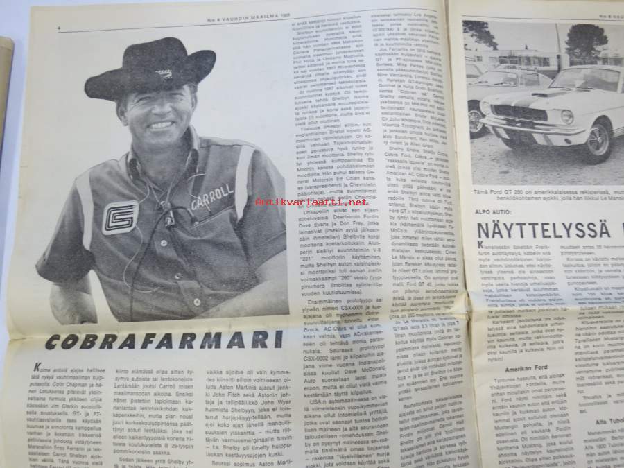 Vauhdin maailma 1965 nr 8, sis. mm. seur. artikkelit / kuvat / mainokset; Länsiraudat ja Itäharju, Cobrafarmari Carrol Shelby ja Cobra Daytona Coupé, Näyttelyssä nähtyä Honda 600 Coupe - Alfa Tubolare - Ford GT 350 - Porsche Targa, Karlskoga Roskilde tulokset, Karl-Gustav Paukapää Mannheim-ringillä, Formula kaikelle kansalle, Hakkaa päälle Rampe Kossila!, Kova kisa - kiva rata, Jääratasäännöt -66, katso sisältö kuvista tarkemmin.