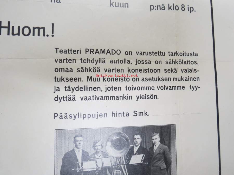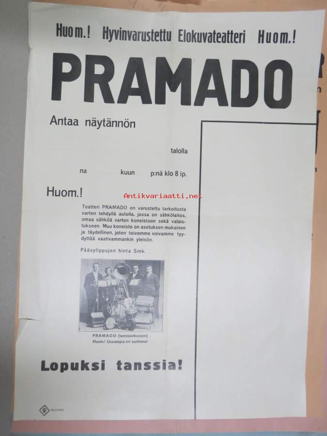 Elokuvateatteri Pramado antaa näytöksen + tanssiorkesteri -elokuvajuliste