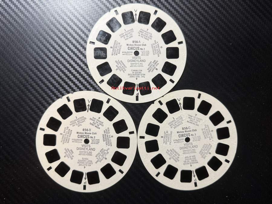 View-Master – Mickey Mouse Club: Circus – Visits Disneyland – 856-A / 856-B / 856-C -sarja – reel / kuvakiekko