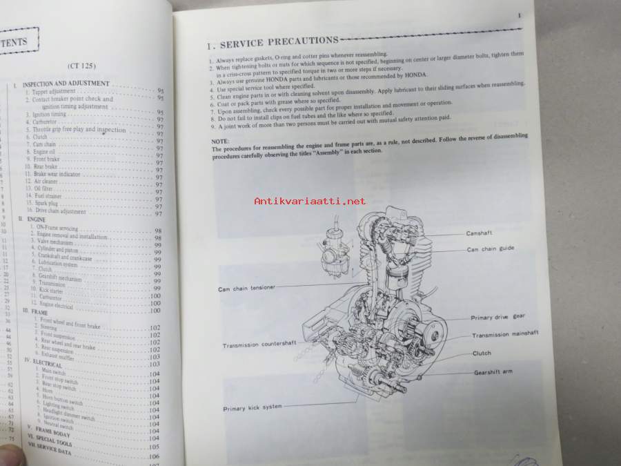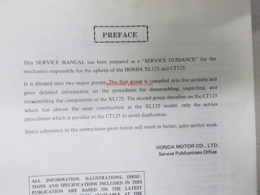Honda XL 125 / CT 125 Shop Manual -korjaamokirja englanniksi