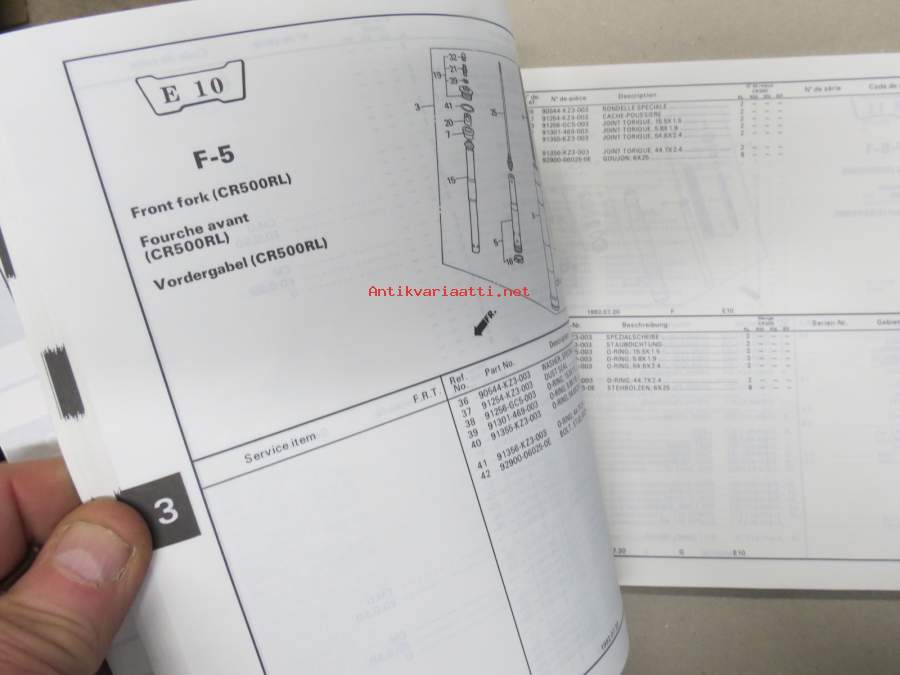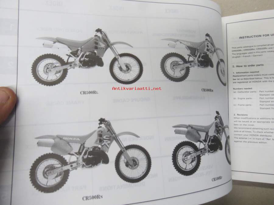 Honda CR500Rl - Rm - Rn - Rp -Parts Catalogue -varaosaluettelo
