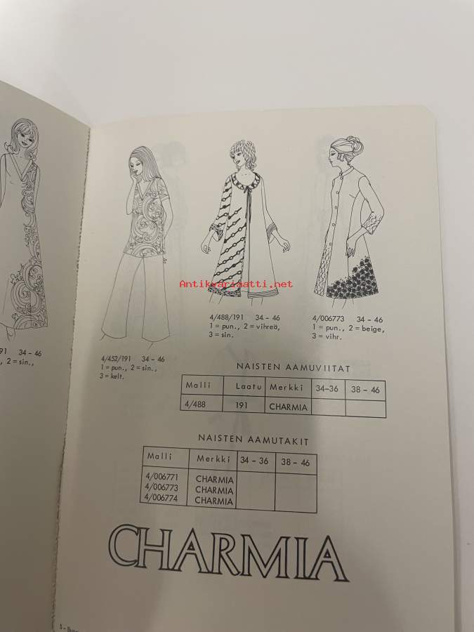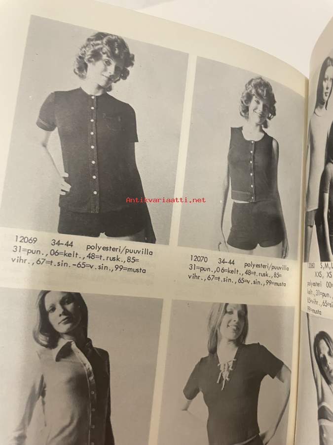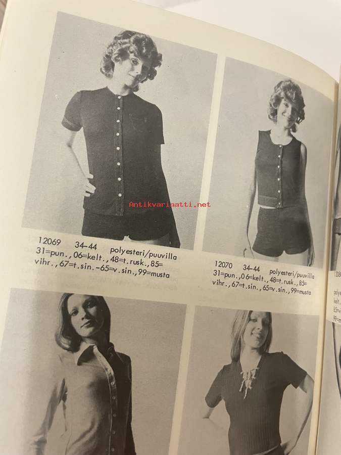 Suomen Trikoo hinnasto 1972 kevät kuvasto -kuvallinen tuoteluettelo alusvaatteet, sukat, uima-asut ym.