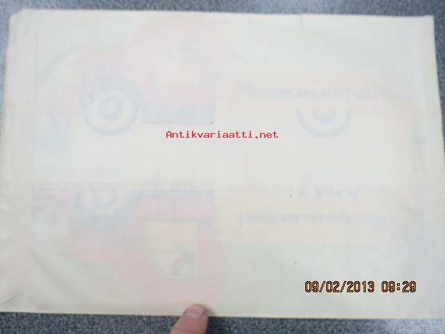 Pahvinjalostus Oy -pakkauksessa oleva käyttämätön kartongista taivuteltava kuorma-auto noin 1950-luvulta
